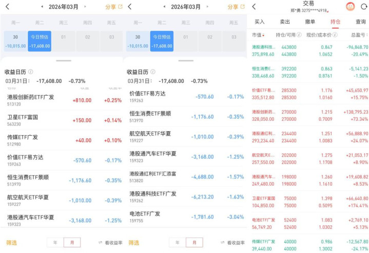 (1)ETF实盘账户,今天亏本-1.8万;