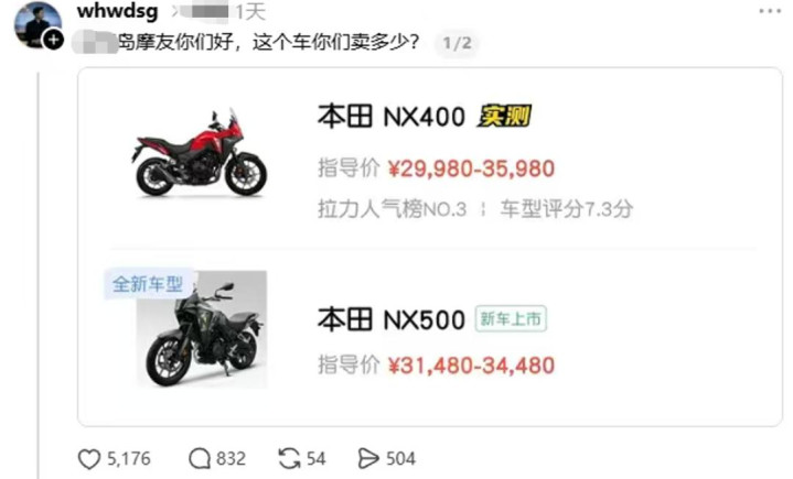 传说原来七万多的本田 NX500,国产之后价钱径直腰斩,外资品牌也不得不随着降价内卷。