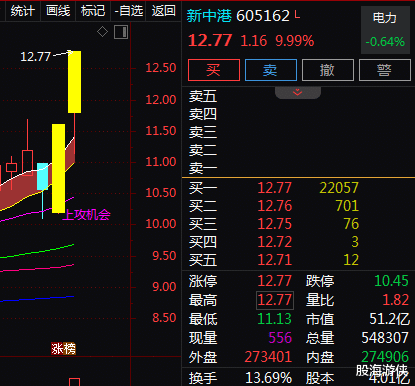 从本领面上来看,新中港(605162)该股在板块的带动下,2天2板!2个往复日股价高潮了21.04%!均线呈现多头罗列,MACD有持续上扬的能源,主力资金净流入2909.2万元。