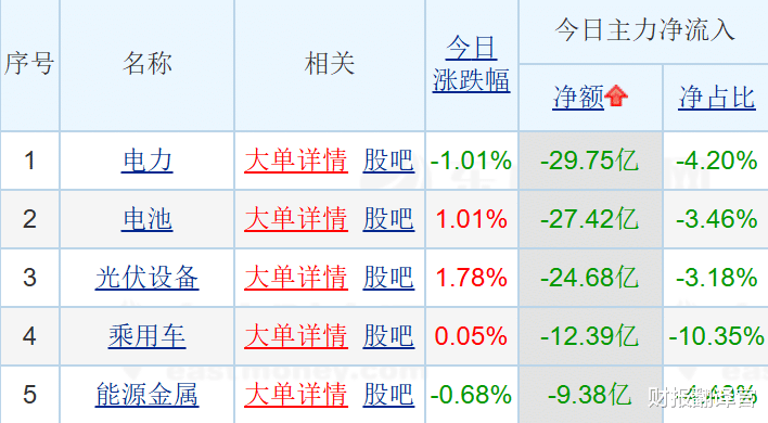 电力净流出30亿,电板净流出27亿,光伏净流出25亿。
