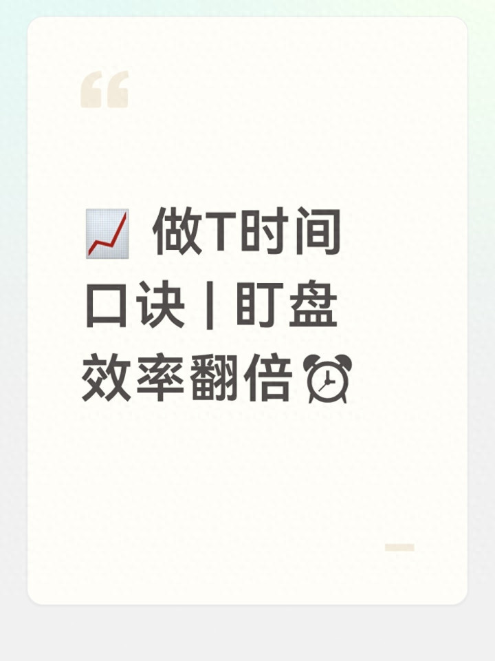 只作念你遥远持有的、老练的个股,智力精确主理它的日内波动节律,用口诀扶助操作,提高作念T得胜率。