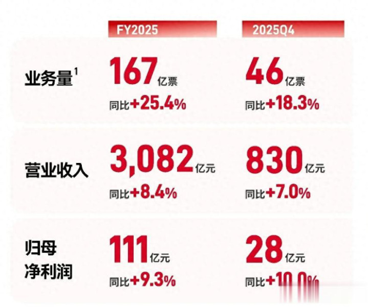 营收3082亿、净利润111.2亿、开脱现款流179亿、业务量同比增长25%……这是顺丰刚刚交出的2025年全年答卷。