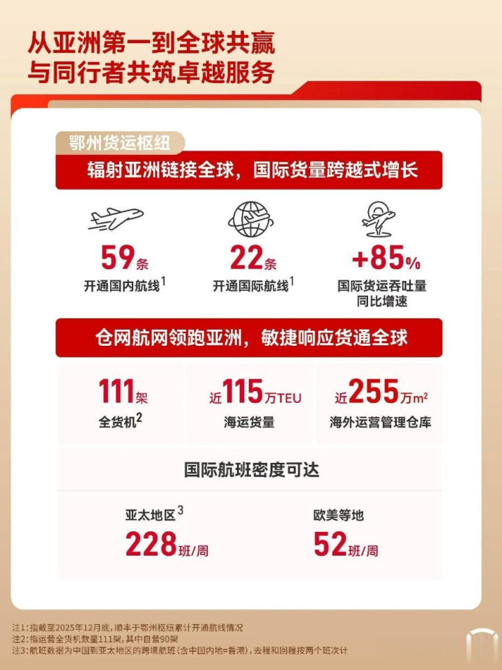 基建层面,鄂州航空货运要津效应抓续开释。甘休2025年底,要津累计开放国际航路22条,国际航空货运糊涂量同比增长85%。顺丰在大家运营仓储面积超 1400万往常米,其中国际仓近255万往常米,障翳37个国度及地区,约65%的《资产》中国500强企业选用顺丰国际管事。