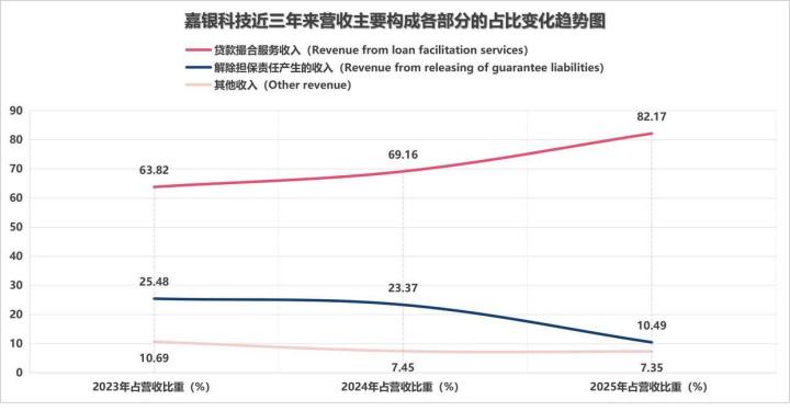 从2025年全年收入组成来看,嘉银科技与助贷业务唇一火齿寒的贷款撮合事业收入(Revenuefromloanfacilitationservices)约为51.13亿元,同比增幅达27.4%,占全年营收的比重普及大约。新京报贝壳财经记者查询嘉银科技近三年来营收主要组成各部分的占比情况发现,只消贷款撮合事业收入的比重保执了执续增长。