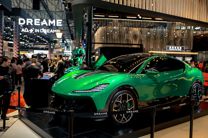 在AWE上,追觅星空筹备相接展示了三款宗旨车型。其中,绿色超跑车型为NebulaNEXT01。图片