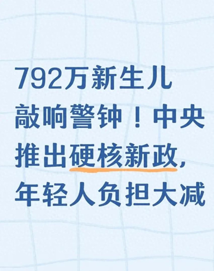 792万更生儿敲响警钟!中央5大硬核新政,年青东说念主养娃背负平直减半