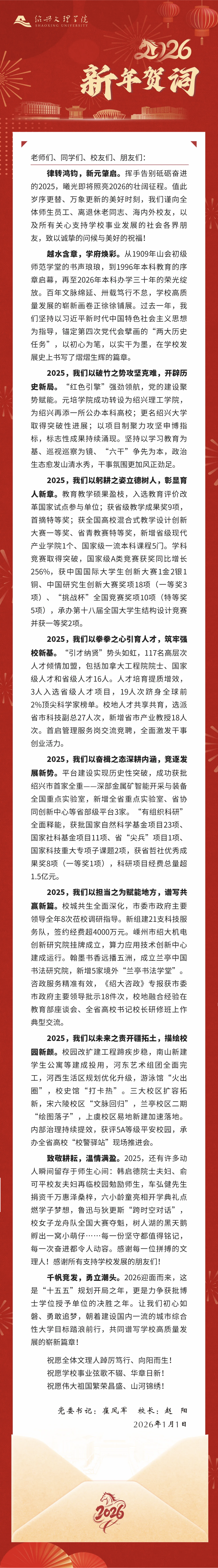 绍兴文理学院新年贺词。学校供图
