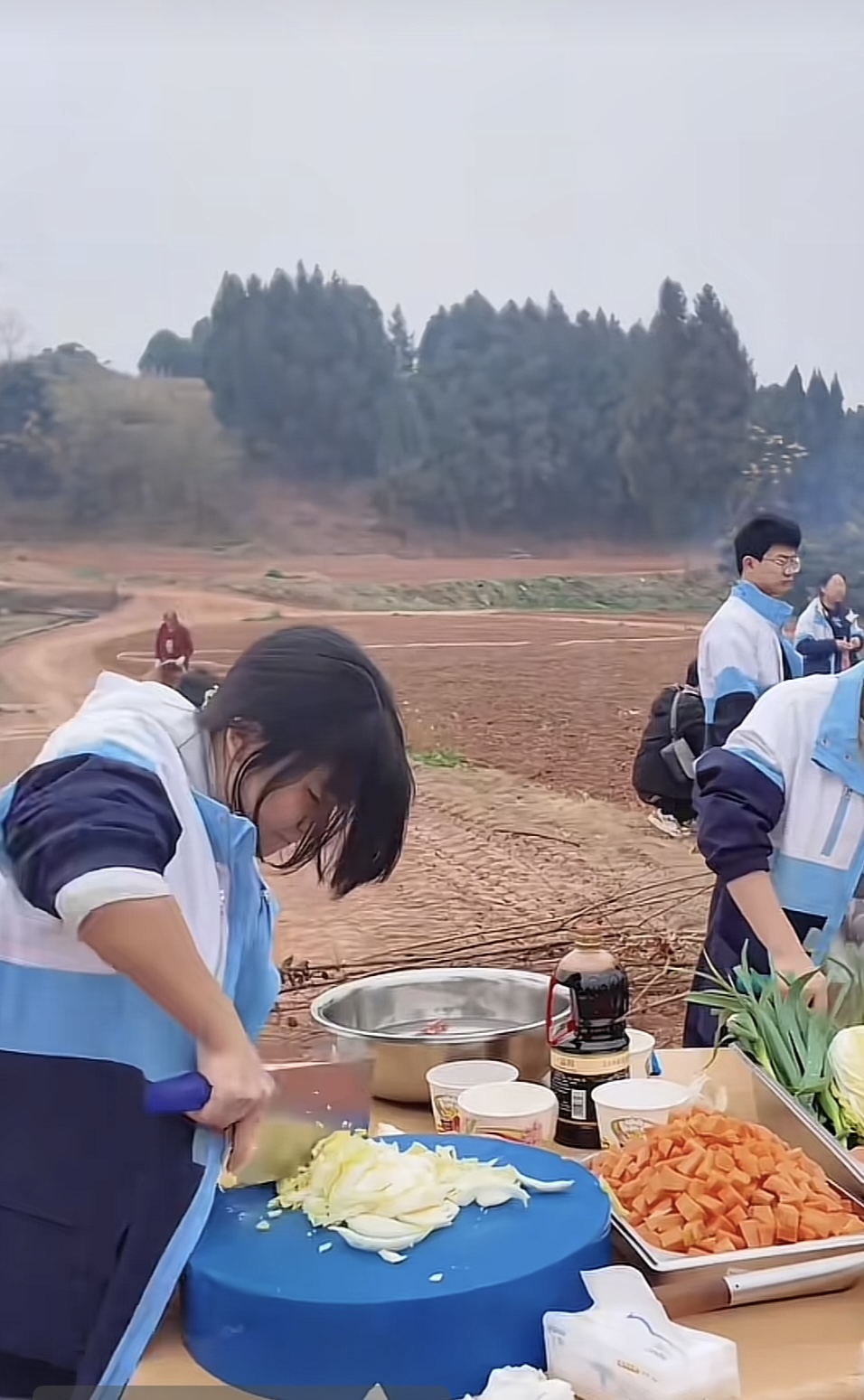 1月9日,一段来自四川德阳鸿鹄高中的视频在集结上激励关注。视频中,学生们自带锅碗瓢盆,在学校隔邻的农业基地生火作念菜、采摘萝卜,早先烹调、亲近当然,场景颇有80后、90后童年野炊的滋味。
