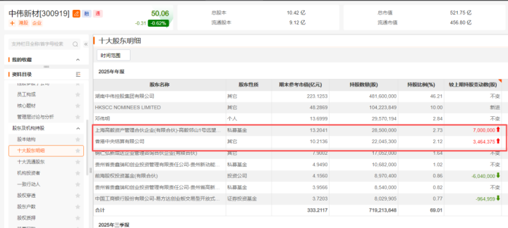 3月31日,中伟新材发布的2025年度陈诉自满,设施2025年末,高毅邻山1号瞭望基金合手有该公司2850万股,期末合手股市值为13.2亿元,相较于昨年三季度末增合手700万股。昨年四季度相同加仓的还有“灵巧钱”,香港中央结算有限公司增合手中伟新材346.4万股。