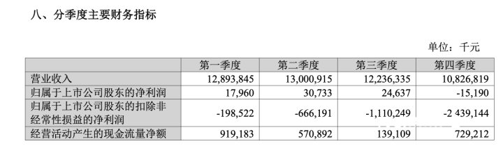 尤为引东说念主把稳的是,ST易购2025年四个季度中,2025年第一、二、三季度归母净利润永诀为1796万元、3073.3万元和2463.7万元,第四季度亏蚀1519万元,呈现前盈后亏、逐季下滑的趋势。况兼亏非净利润方面更是亏蚀呈现逐季扩大趋势——客岁四个季度永诀亏蚀1.98亿元、6.66亿元、11.1亿元、24.3亿元。