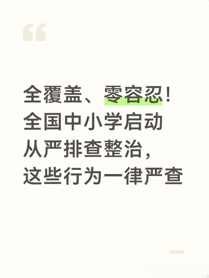 最近教导部等四部门推断发文,寰宇中小学开动“全障翳、零容忍”从严排查整治,从校园安全、办学范例、师德师风到学生职权,全链条严查,不少家长还不明晰具体查什么、我方该浮松啥,今天一次性讲透。