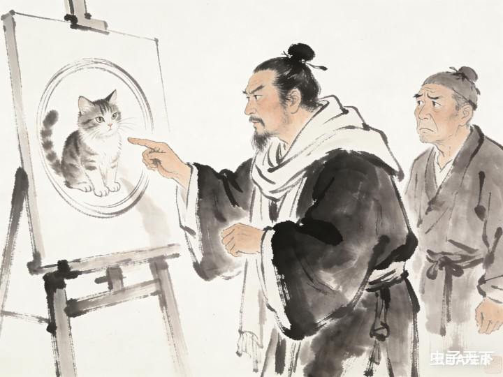“哟,这猫画得比咱家真猫还俊!”老周头咧着缺了牙的嘴笑,眼角皱纹堆成菊花,“这画姥爷要挂客厅正中间,比那啥十字绣强多了!”