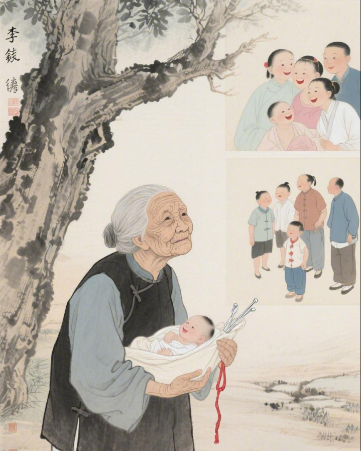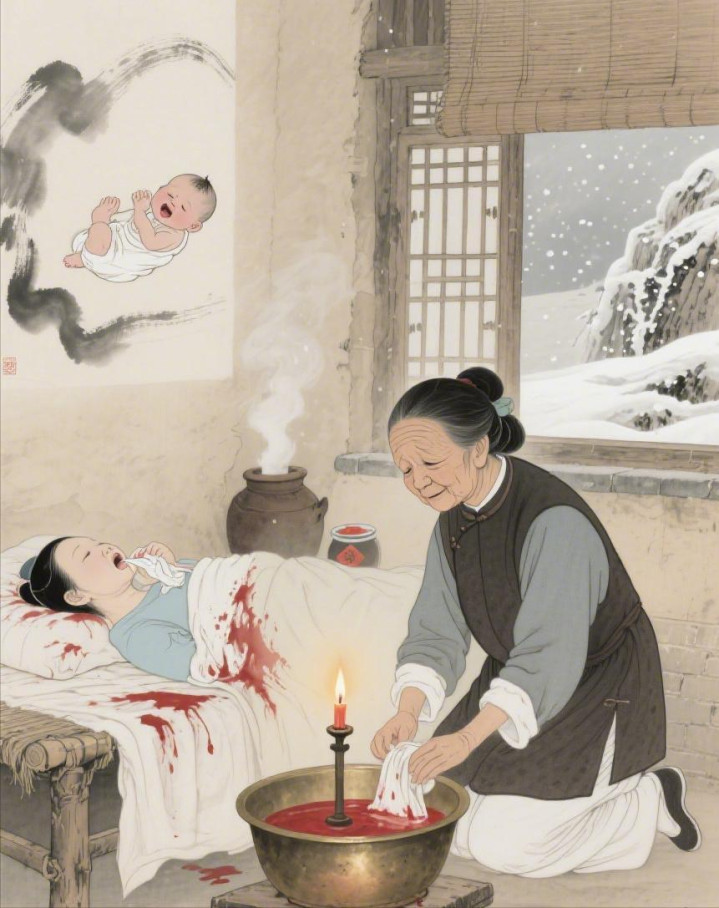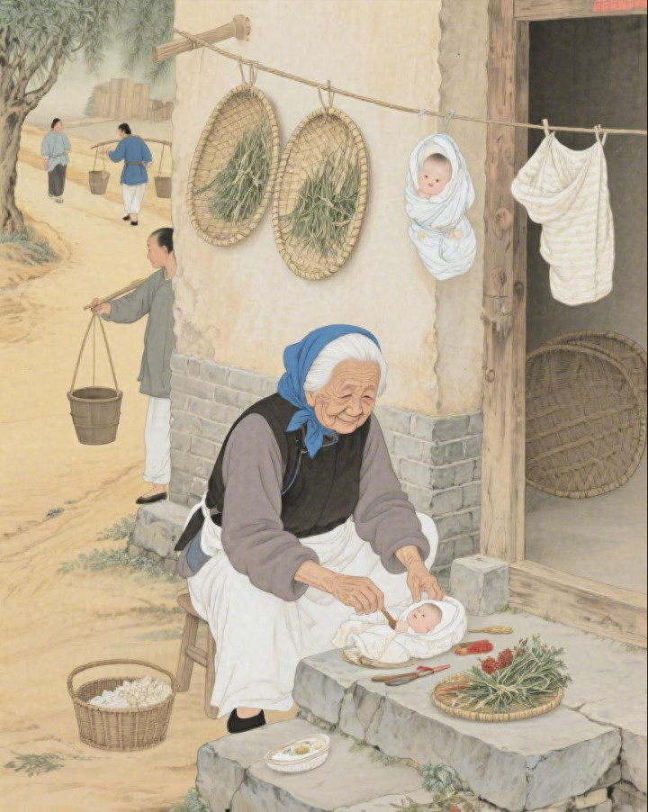 她的手又稳又快,这是四十年的功夫练出来的。她一边推着产妇的肚子,一边柔声念着口诀:“头朝下,脚向上,乖乖转过来,别让你娘受苦……”