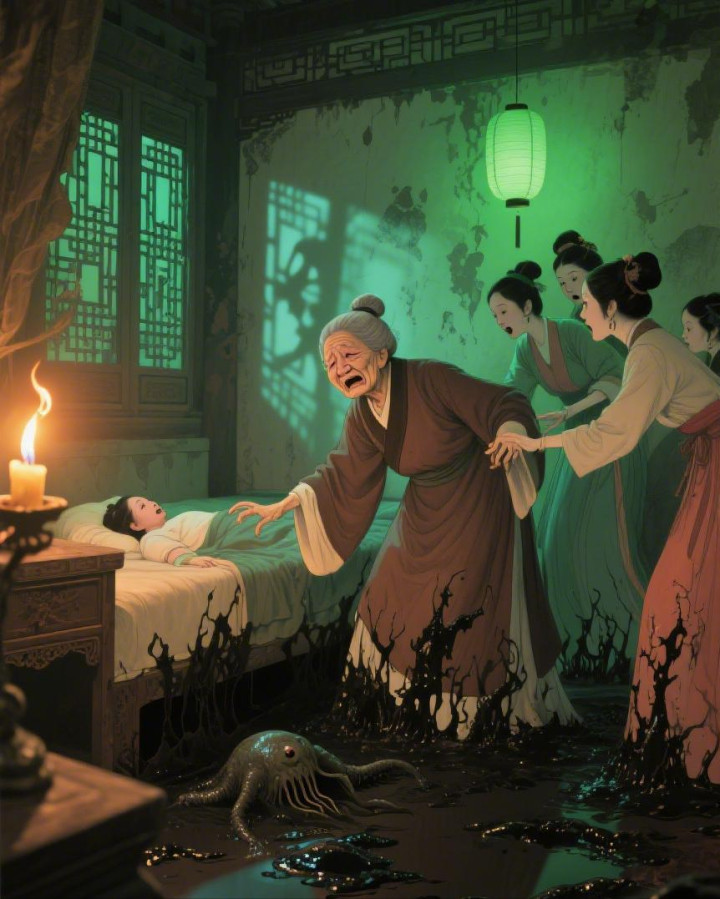 就在这时,她闻到一股激烈的泥腥味,从床下面、从墙角、从四面八方涌来,熏得她简直作呕。她猛地昂首,看见床上的产妇正繁重地起身,用躯壳挡在她眼前,对着那些丫鬟喊:“快带婆婆走!快!再晚就来不足了!”