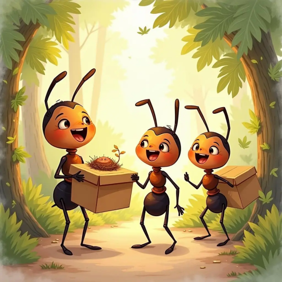 团纠配合完成搬家伟业的小蚂蚁的故事。