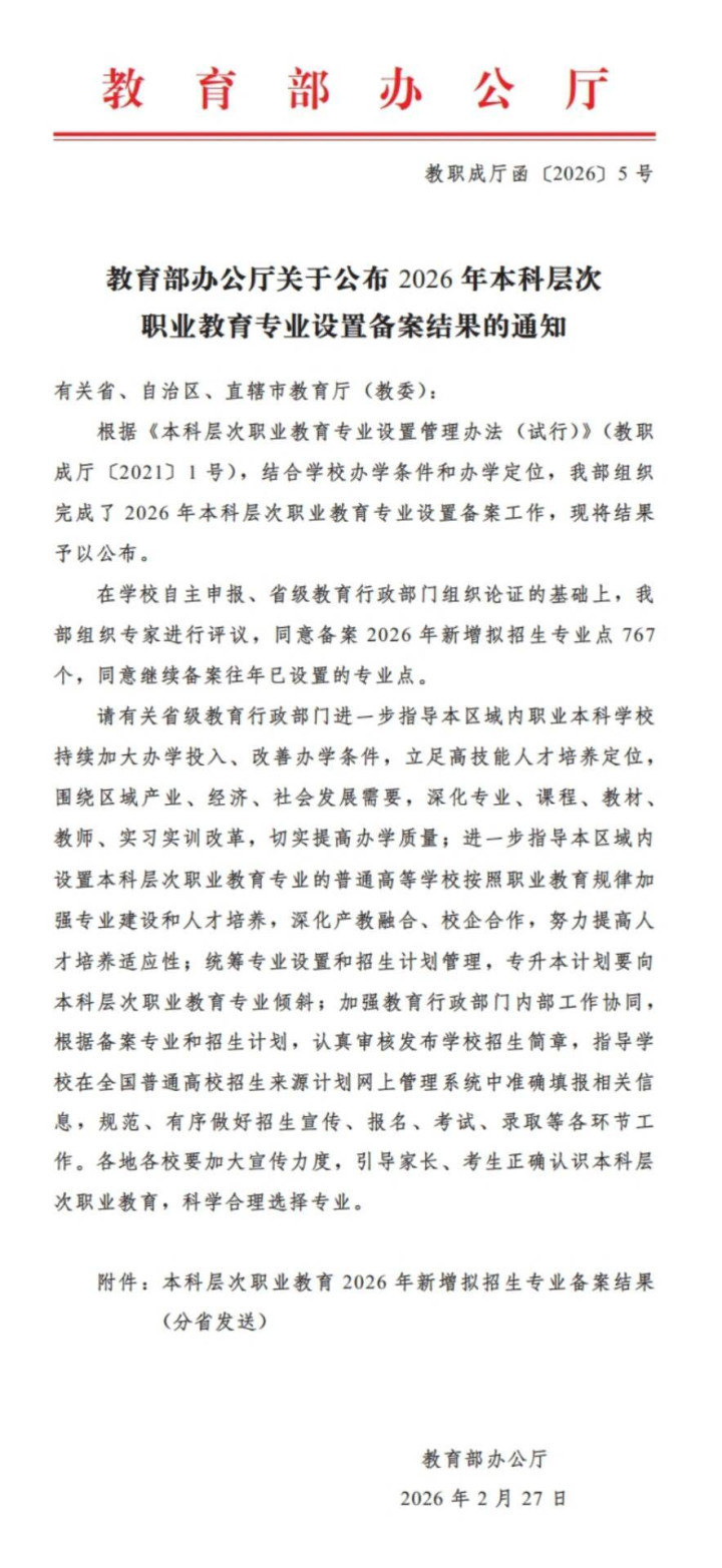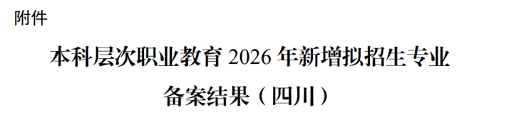 近日,考验部办公厅庄重公布2026年本科档次功绩考验专科确立备案遵循,绵阳城市学院请问的“新动力发电工程本领”“无东说念主机系统哄骗本领”2个四年制本科档次功绩考验专科见效获批。这次专科备案通过,是学校深切贯彻国度当代功绩考验体系开拓纠正决策部署的伏击推论,更是学校股东开拓西部一流、特点明显高水平哄骗型大学、探索高等次本领技巧东说念主才培养旅途的关节冲破,为学校精确就业区域产业转型升级再添新翼。