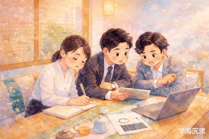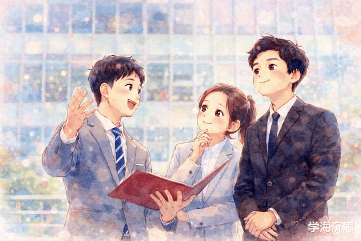 两个东说念主,一左一右。左边阿谁埋头干活,头发乱得像刚被风吹过,桌上堆满文献,杯子里咖啡早就凉了。右边阿谁站着,穿戴平整,正对着雇主讲什么,手势还挺自信。