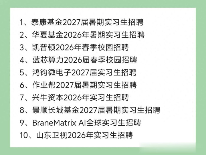小编整理了一份转正率很高的实习清单,26届、27届的同学们可以重心望望: