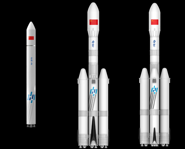 力箭二号系列火箭暗意图(左起):力箭二号单芯级、力箭二号、力箭二号重型
